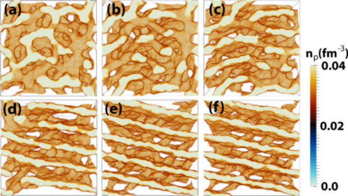 “When you have a dense collection of protons and neutrons like you do on the surface of a neutron star, the strong nuclear force and the electromagnetic forces conspire to give you phases of matter you wouldn’t be able to predict if you had just looked at those forces operating on small collections of neutrons and protons.”